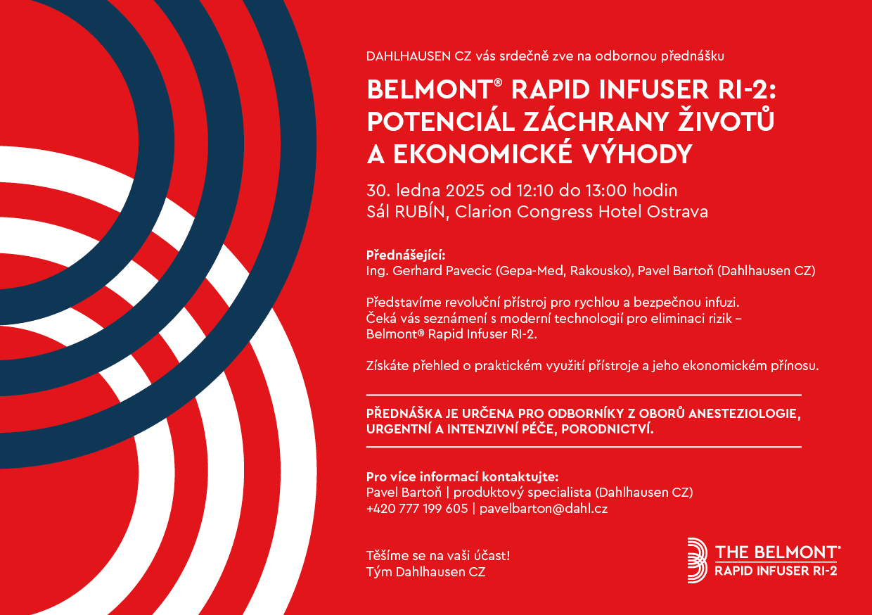 Společnost Dahlhausen CZ vás srdečně zve na odbornou přednášku, která se zaměří na revoluční technologii Belmont® Rapid Infuser RI-2 – zařízení, které mohou zachránit život a přináší zároveň ekonomické výhody.